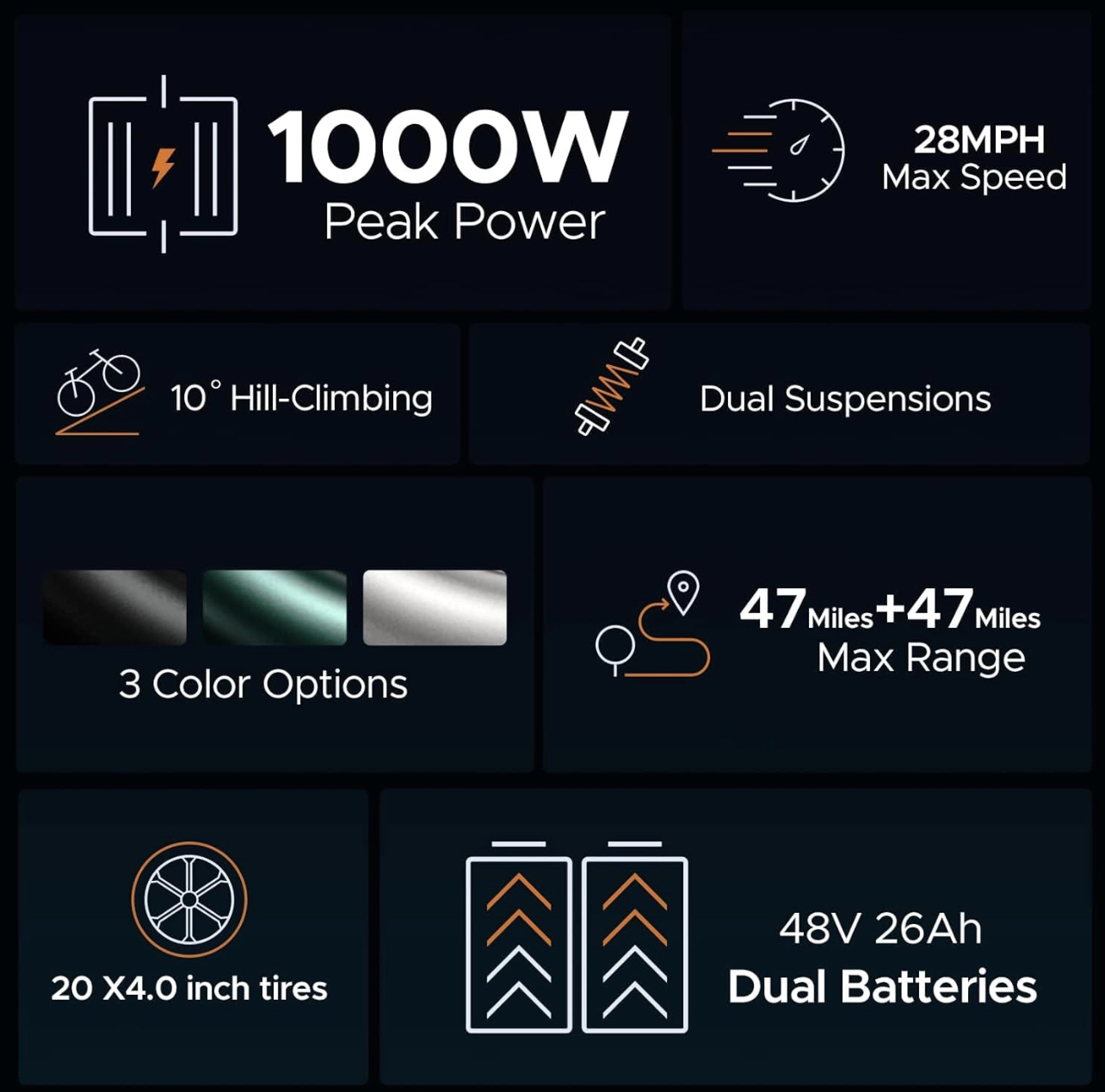 Features Extras: Dual LED front lights, integrated rear light, full mudguards, integrated seat, Top tube mounted storage box