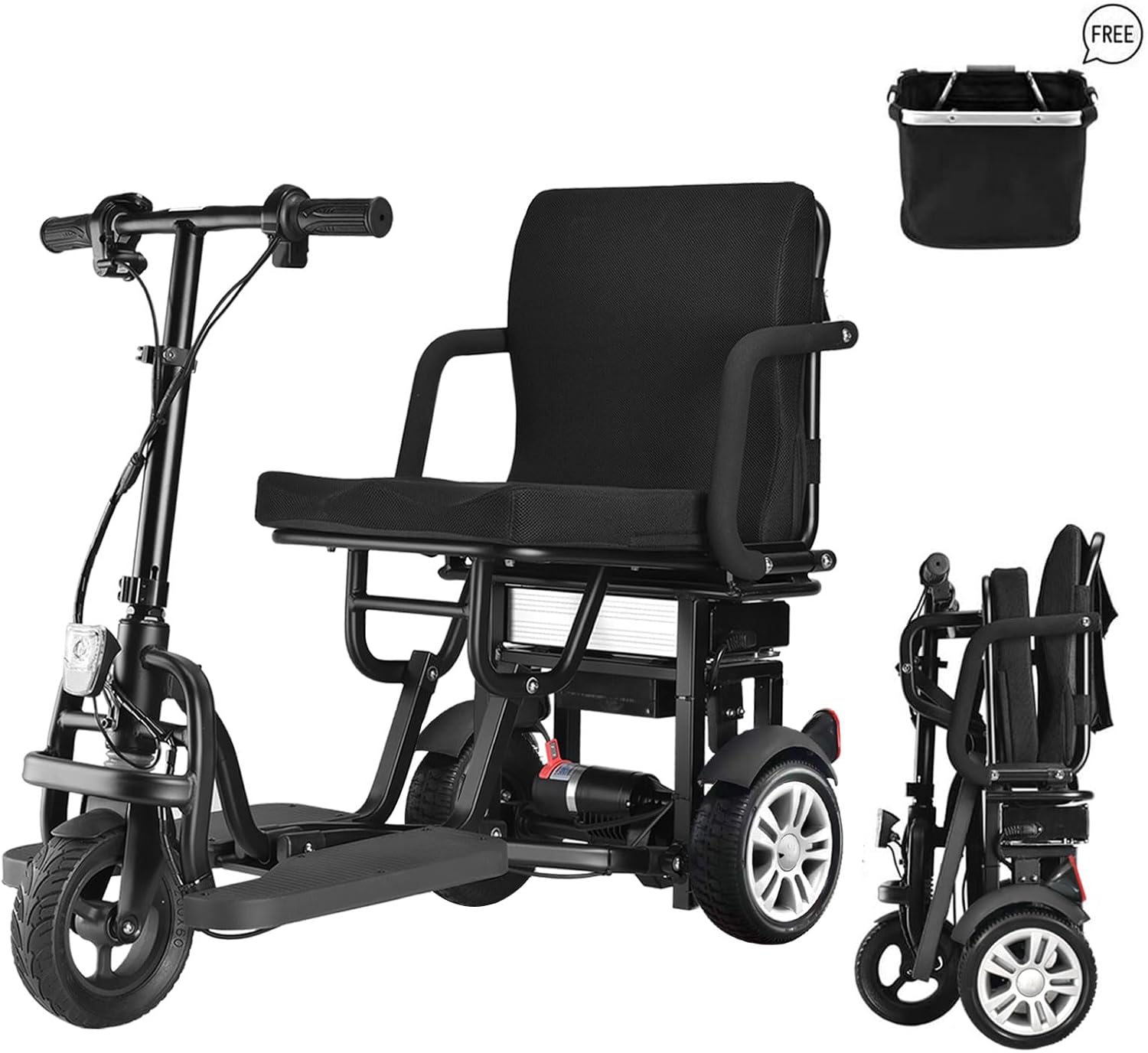 WISGING Folding Electric 3-Wheel Mobility Scooter Lightweight Portable Power Travel Scooter