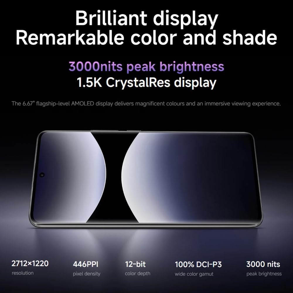 6.67″ CrystalRes AMOLED displayResolution: 2712 x 1220 (1.5K resolution)Refresh rate: Up to 120HzTouch sampling rate: Up to 480HzBrightness: 3000nits peak brightnessColor depth: 12bitContrast ratio: 5,000,000:1DCI-P3 wide color gamutCorning® Gorilla® Glass Victus® 2Supports Dolby Vision®Reading mode1920Hz PWM dimming|20,000-level brightness adjustment|HDR10+ | TÜV Rheinland Low Blue Light (Hardware Solution) Certified | TÜV Rheinland Flicker Free Certified | TÜV Rheinland Circadian Friendly Certified